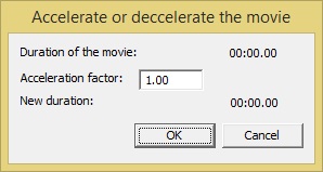 ![]() From the menu "Setup->Accelerate..." the Accelerate or deccelerate the movie dialog is opened This is a quick way to make everything faster or slower The Acceleration factor controls the effect | |||||||